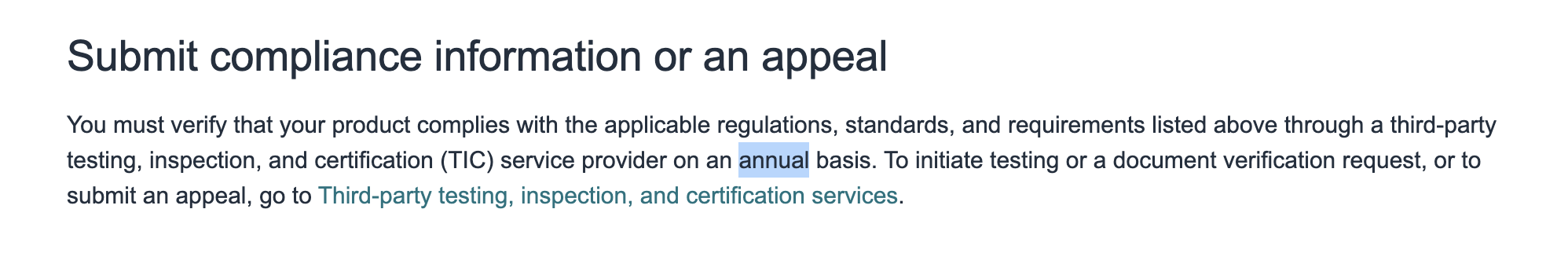 Tym samym Amazon wymaga od sprzedawców czegoś więcej niż prawo unijne. W Unii Europejskiej producent lub importer odpowiada za zgodność produktów z dyrektywą w sprawie bezpieczeństwa zabawek i powinien posiadać stosowne dokumenty. Testy są ważne tak długo, jak długo produkt ani przepisy się nie zmieniają. Amazon natomiast narzuca cykl coroczny.