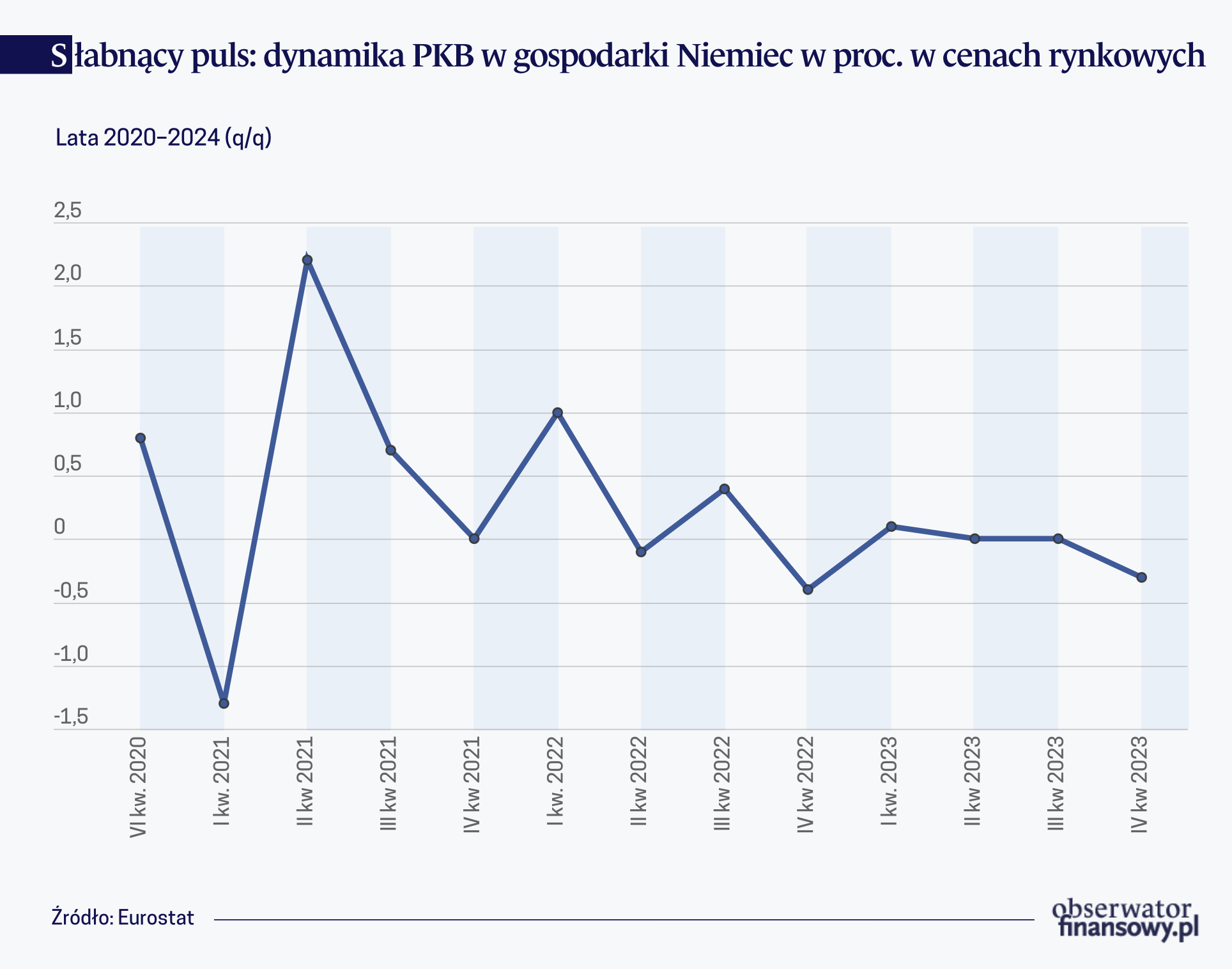 Słaby popyt zewnętrzny, ostrożność konsumentów i wciąż relatywnie wysokie stopy procentowe, które hamują inwestycje krajowe, to zjawiska charakteryzujące obecny stan gospodarki Niemiec. Stagnacja w Niemczech stała się tak znacząca, że niektórzy zaczęli ogłaszać zmierzch niemieckiego kapitalizmu. W 2023 roku „The Economist” ponownie określił Niemcy mianem „chorego człowieka” Europy, podobnie jak to miało miejsce dwie dekady wcześniej. Tymczasem termin „dezindustrializacja” zyskał na popularności, malując obraz gospodarki Niemiec bez fabryk jako najbardziej prawdopodobnej ścieżki rozwoju.