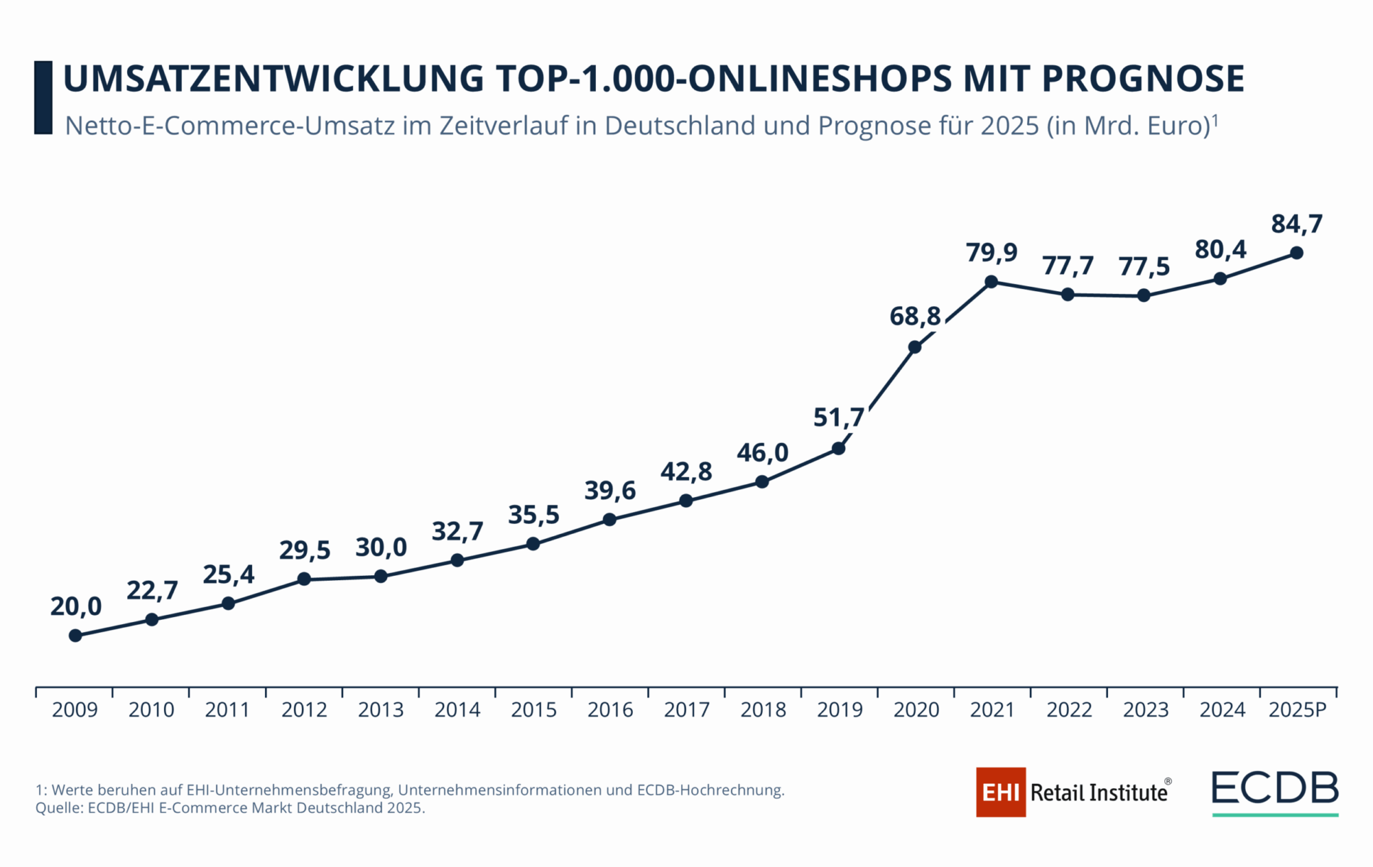 Niemiecki handel internetowy ponownie przyspiesza. Po dwóch latach stagnacji branża wreszcie notuje wyraźne wzrosty, a szczególnie dynamicznie rozwijają się najwięksi gracze. Z najnowszej edycji badania „E-Commerce-Markt Deutschland 2025” przygotowanego przez EHI Retail Institute i firmę analityczną ECDB wynika, że w 2024 roku 1000 największych sklepów internetowych w Niemczech osiągnęło łącznie 80,4 miliarda euro przychodu. To o 2,9 miliarda więcej niż rok wcześniej, co przekłada się na wzrost o 3,8 procent nominalnie i 3,0 procent realnie.