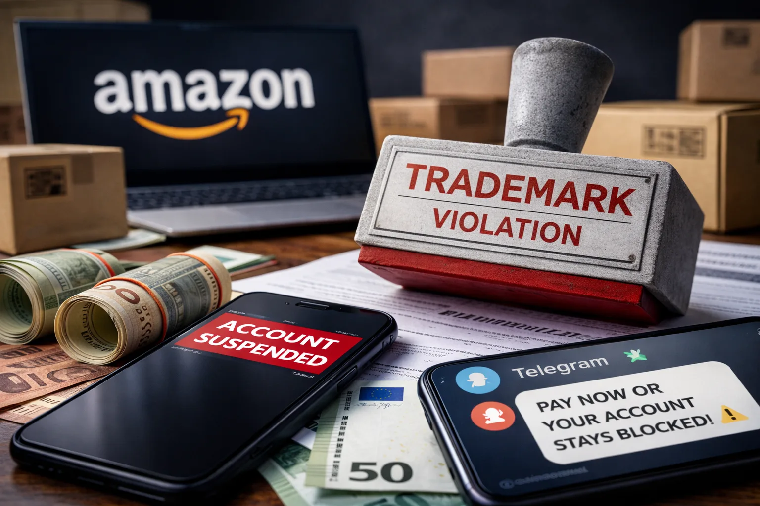 Kluczowy element — i zarazem najbardziej niebezpieczny dla biznesu — rozegrał się poza platformą. Sprzedawca miał być kontaktowany m.in. przez Telegram z żądaniem zapłaty „znaczącej kwoty” w zamian za powstrzymanie się od kolejnych zgłoszeń. Przekaz był prosty: jeśli pieniądze nie zostaną wpłacone, do Amazon mają trafiać następne zawiadomienia, prowadzące do kolejnych blokad. W tych okolicznościach nie wyglądało to jak rzeczywiste egzekwowanie praw do marki, lecz jak próba wymuszenia oparta na przewidywalnej reakcji systemu Amazon na zgłoszenie znakowe.